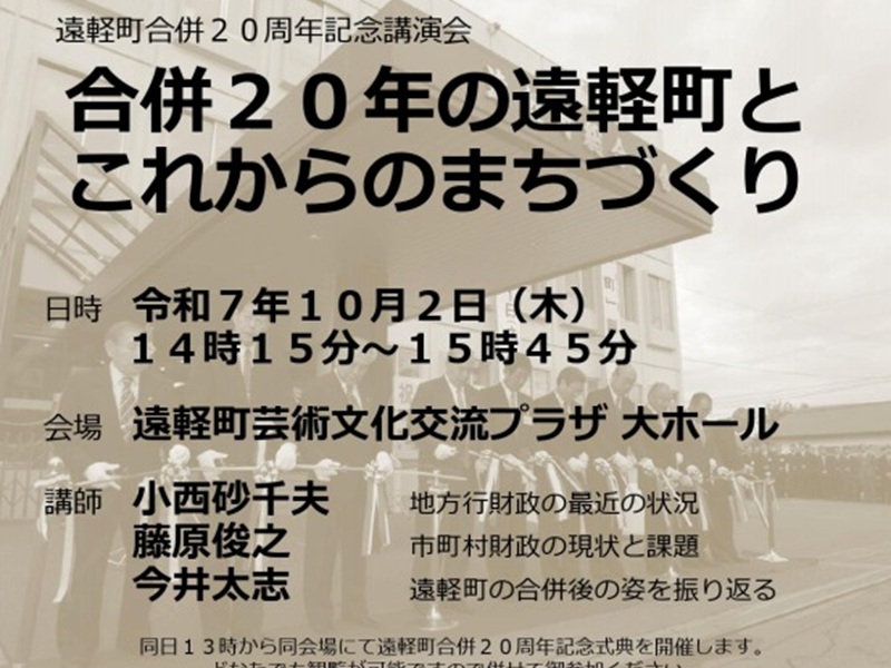 【2025.10.2開催】遠軽町合併20周年記念講演会 合併20年の遠軽町とこれからのまちづくり ※終了しました 日付 令和7年10月2日(木) 時間 14時15分〜15時45分(遠軽町合併20周年式典は13時〜) 場所 大ホール 入場 無料・事前申込不 […] 続きを読む